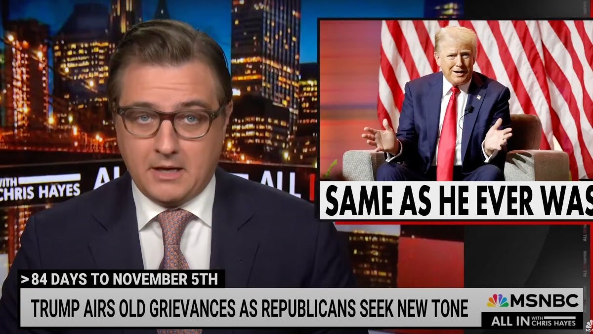 Stephen Colbert was highly amused by the glitchy, deeply weird “conversation” Elon Musk had with…Chris Hayes Says Trump’s ‘The Same Guy He’s Always Been’ With a Brain ‘Scrambled Like Eggs’ Amid GOP Hope for a Pivot | Video